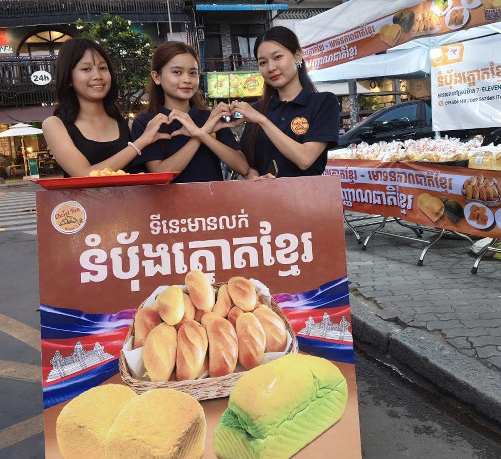យើងខ្ញុំតែងតែផ្គត់ផ្គង់នូវនំដុតថ្មីៗជារៀងរាល់ថ្ងៃមានឱជារសឈ្ងុញឆ្ងាញ់ជូនដល់អតិថិជន។ សម្រាប់នំប៉័ងទាំងអស់ត្រូវបានដុតឡើងដោយយកចិត្តទុកខ្ពស់ ប្រើប្រាស់គ្រៀងផ្សំក្នុងស្រុក និងបង្កប់ដោយក្តីស្រលាញ់រសជាតិបែបខ្មែរ។